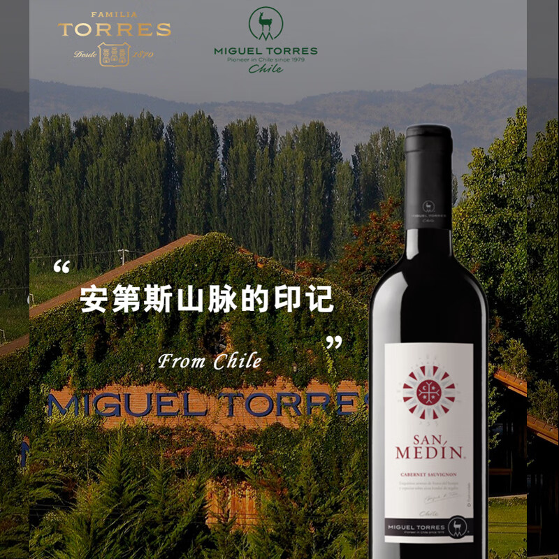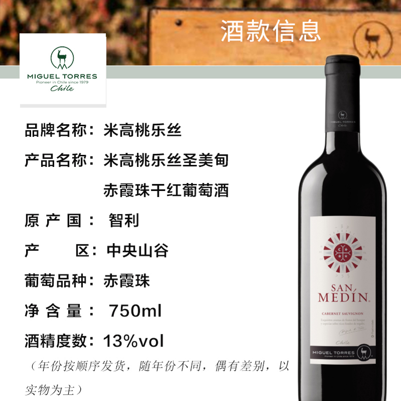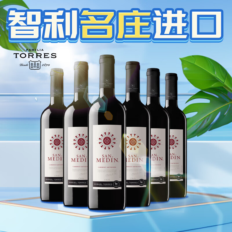 桃乐丝(Torres)米高圣美甸赤霞珠干红葡萄酒750ml*6整箱 智利进口红酒佳酿送礼盒价格:461.00元!