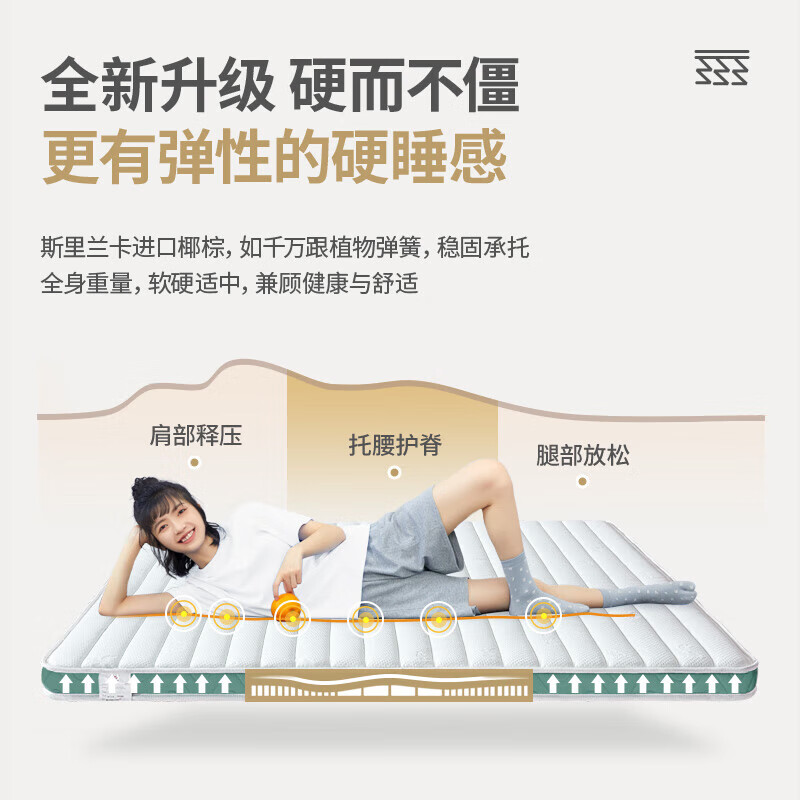Sweetnight榻榻米床垫天然椰棕床垫8cm床垫子 可定制 甜秘密丹左1.35x2米价格:999.00元!