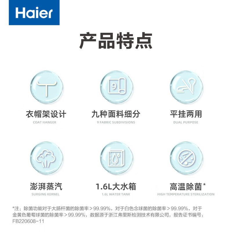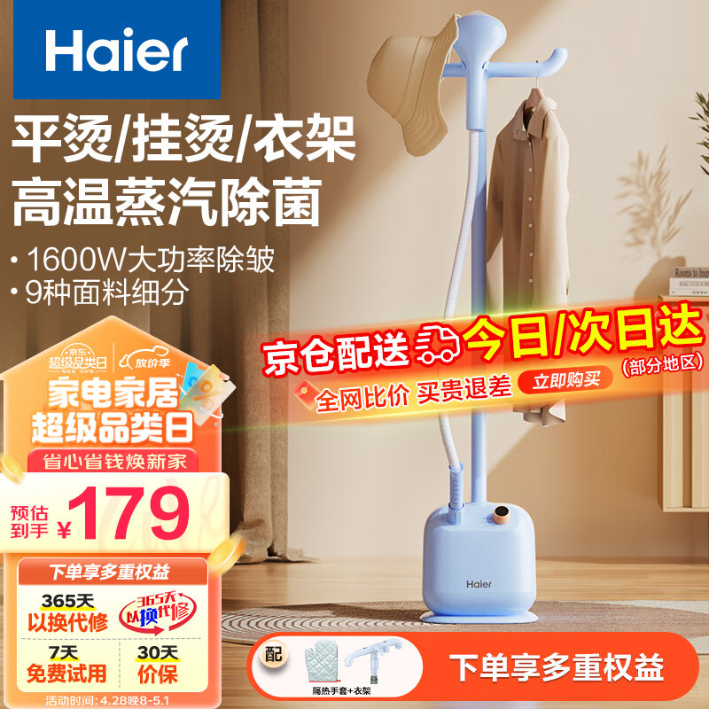 海尔(haier)蒸汽挂烫机家用 2.5L单杆多功能熨烫机 手持挂烫机电熨斗熨衣机 HY-GD1802A价格:179.00元!