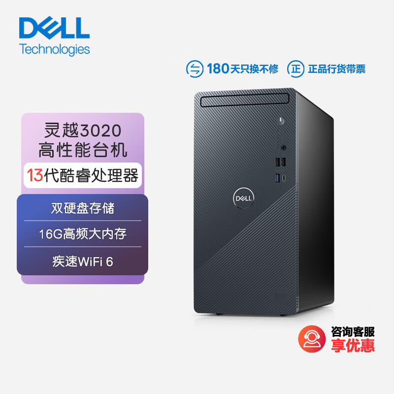 戴尔(DELL)灵越3020 台式电脑主机 (酷睿13代i5-13400 16G 512GB+1TB)单主机 高性能CPU价格:4499.00元!