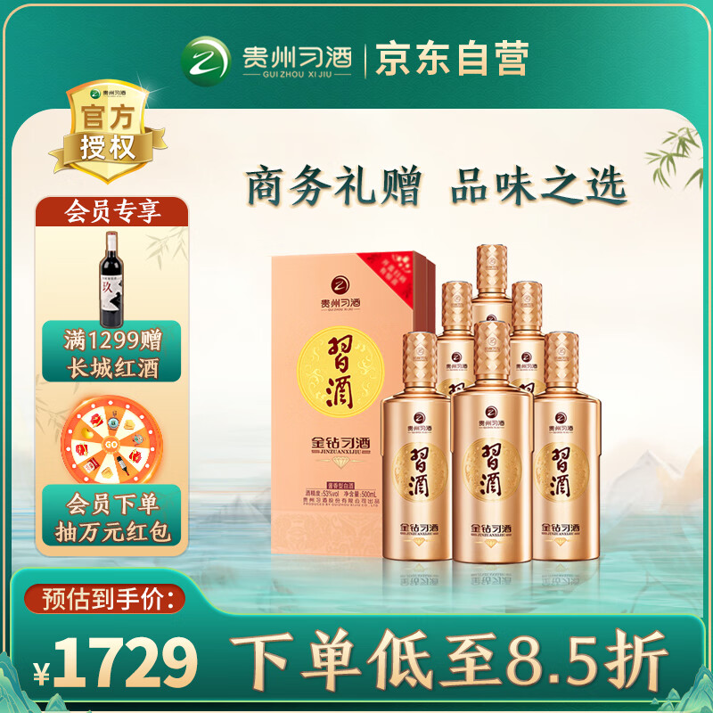 习酒金钻习酒 酱香型白酒53度 500ml*6瓶整箱装 贵州 新老包装随机发价格:2033.00元!