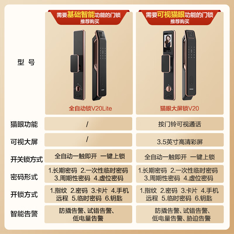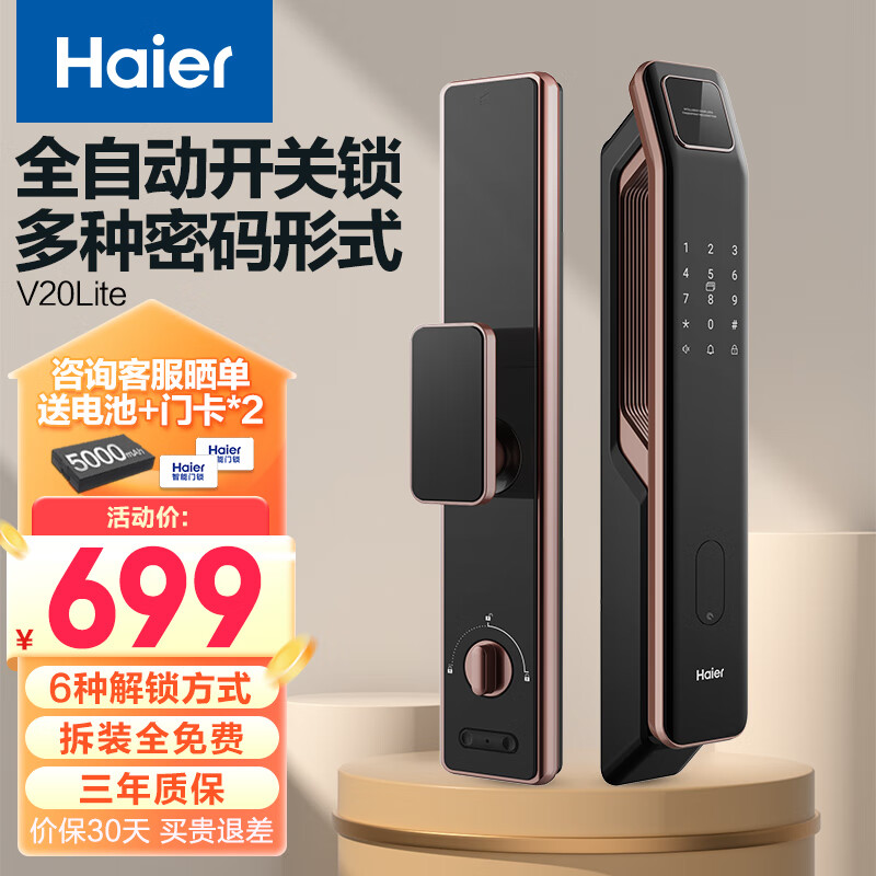海尔(Haier)智能门锁指纹锁指纹密码锁电子门锁HFA-20V-U1Lite免费上门安装价格:799.00元!
