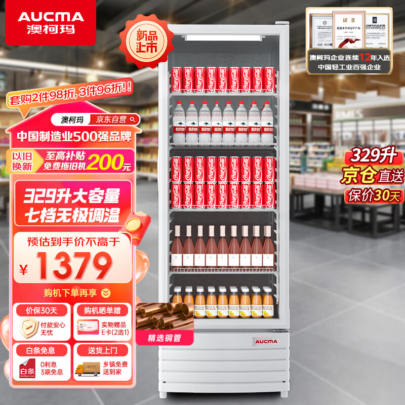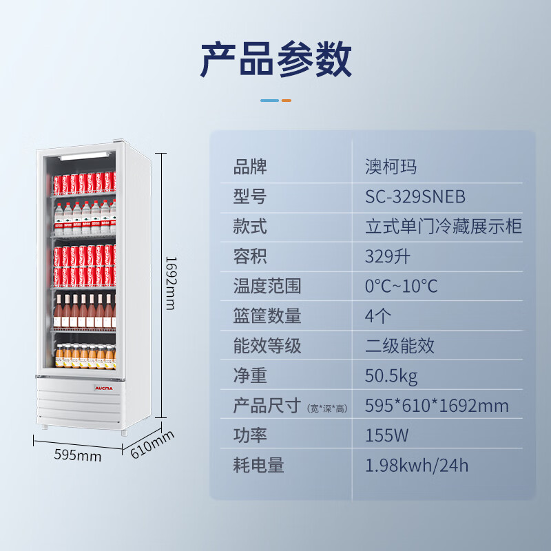 澳柯玛(AUCMA)329升大容量单门冷藏展示柜 商用冰箱 超市饮料啤酒保鲜立式冷柜 茶叶陈列冰柜铜管 SC-329SNEB价格:1479.00元!