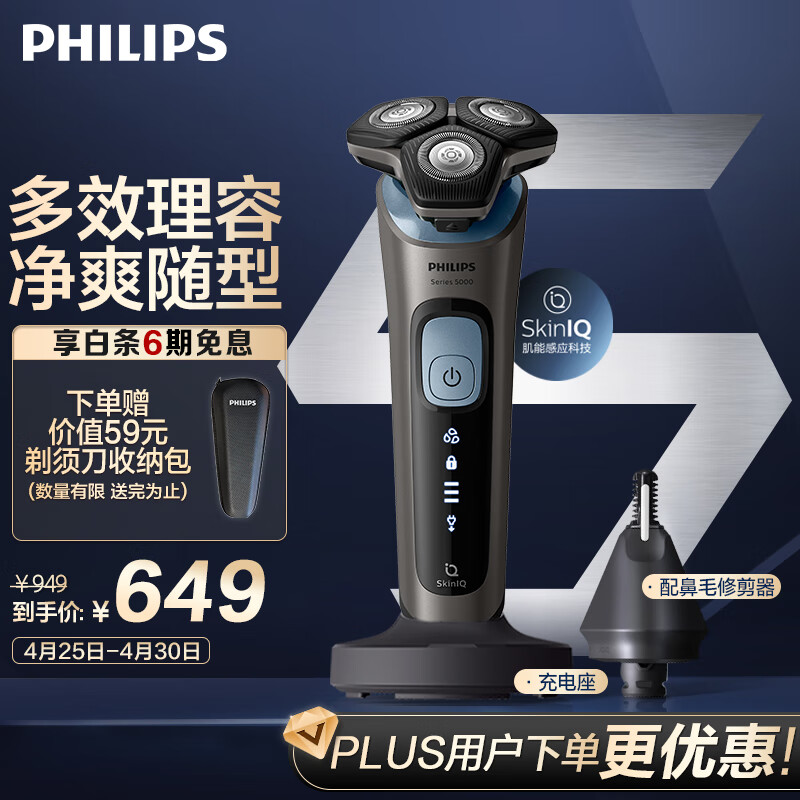 飞利浦(PHILIPS)电动剃须刀蜂巢5系pro SkinIQ智能感应刮胡刀 生日礼物 送男友 送老公价格:629.00元!