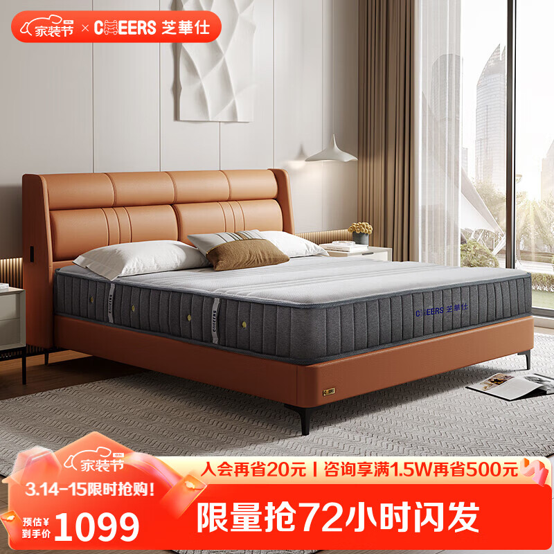 芝华仕乳胶床垫 独立弹簧软硬两用席梦思D026 代棕款1.5*2米价格:1099.00元!
