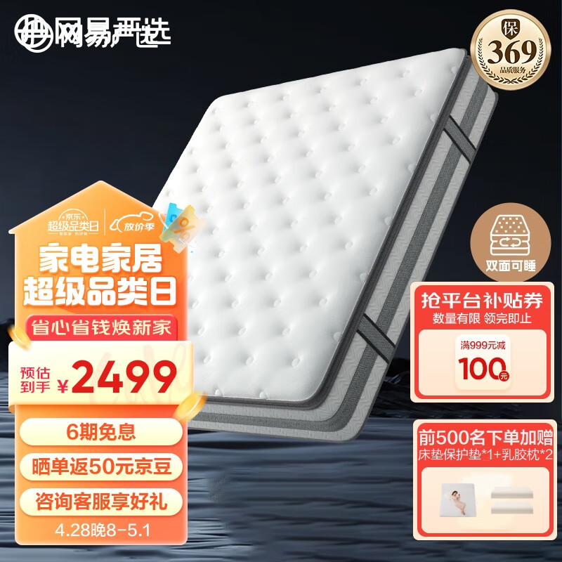 网易严选AB面弹簧床垫2米*2米 进口乳胶床垫 旗舰款 抑菌防螨 独袋弹簧价格:2999.00元!