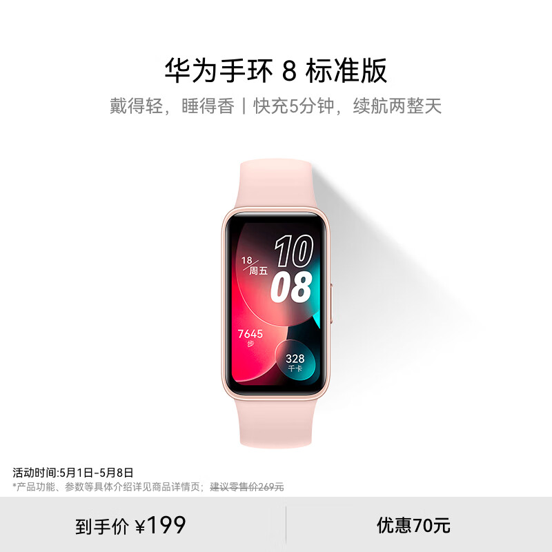 华为手环 8华为手环智能手环快充长续航樱语粉价格:199.00元!