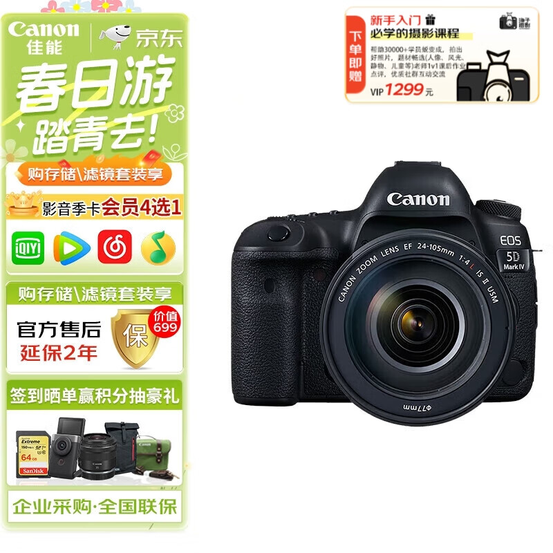 佳能(Canon)EOS 5D Mark IV EF 24-105mm F4L IS II USM二代镜头套机 扫街旅拍套装 价格:24999.00元!