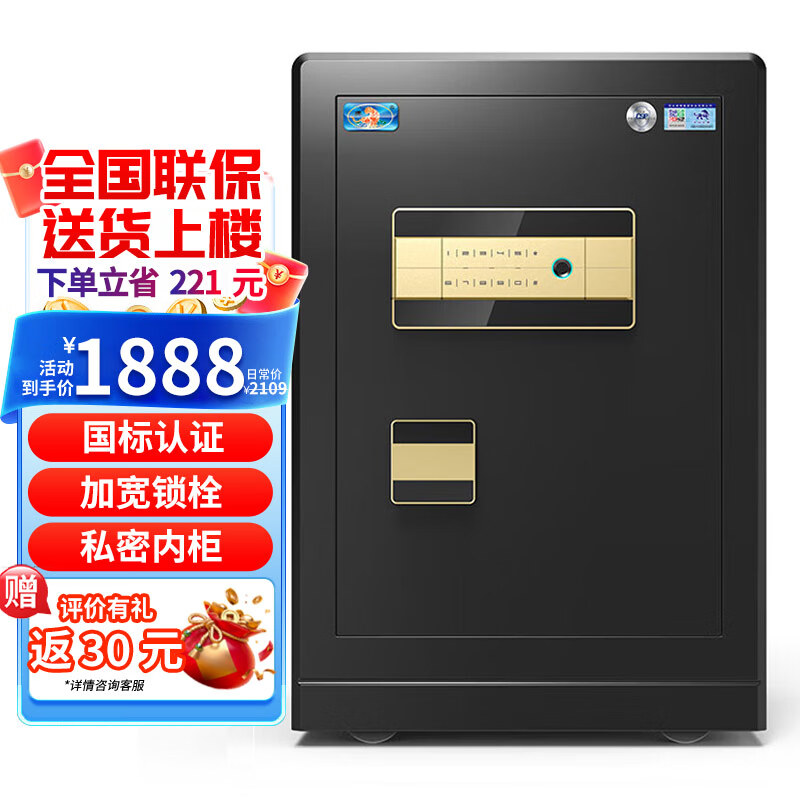 虎牌保险柜家用办公小型国标认证保险箱60cm指纹密码wifi财务专用支持鸿蒙保密柜夹万 尊虎系列 商务黑价格:2098.00元!