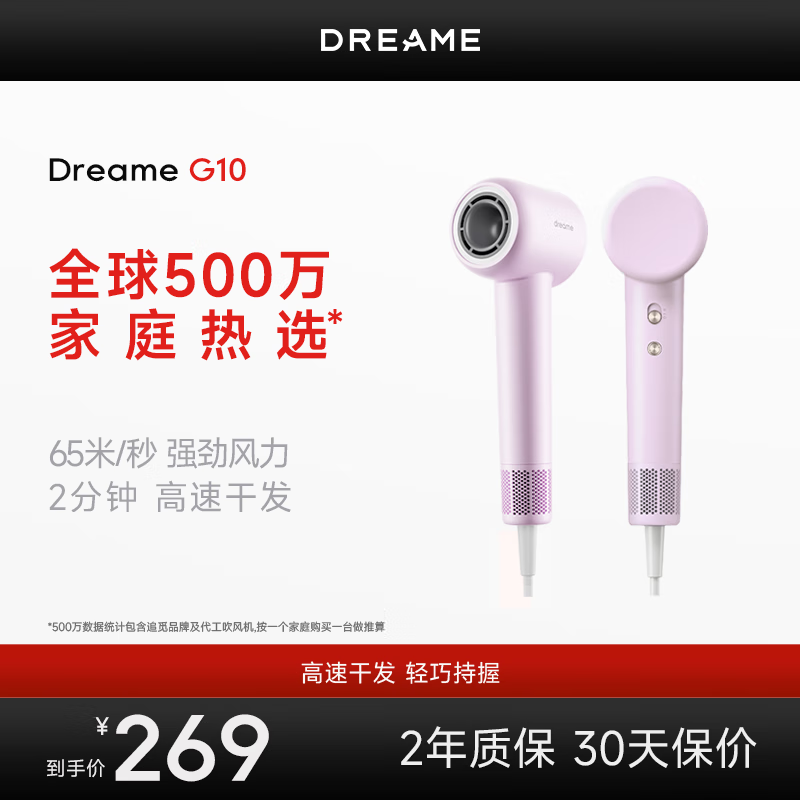 追觅G10高速吹风机家用电吹风大功率速干吹风筒负离子大风力低噪音节日礼物送礼 紫色价格:268.00元!