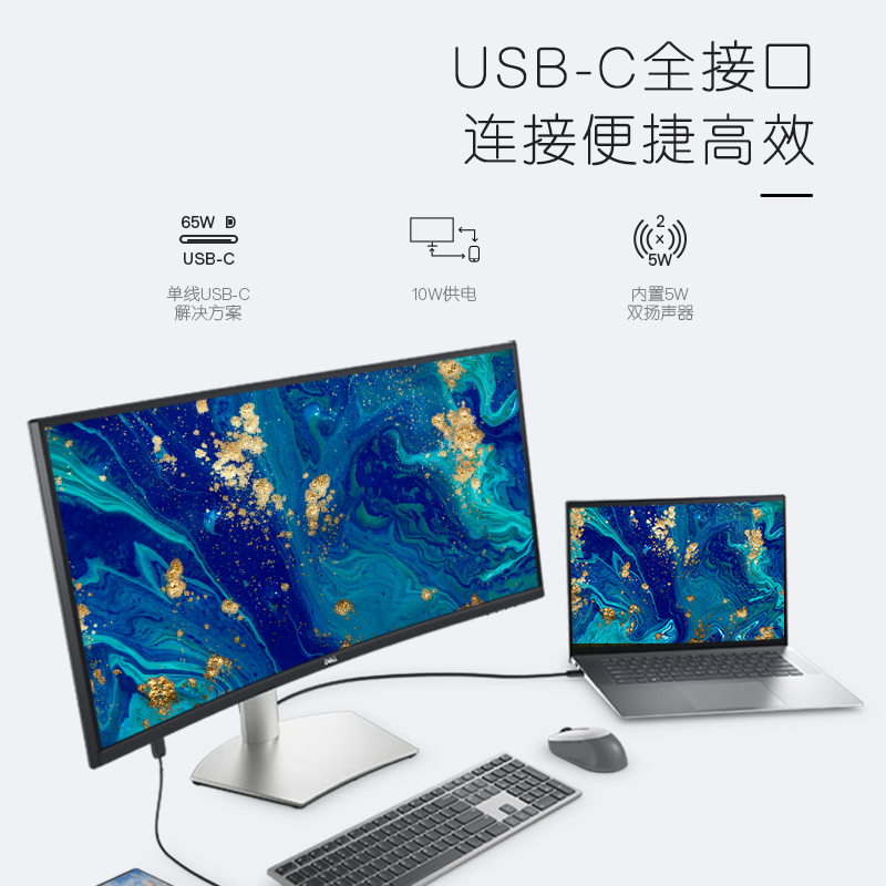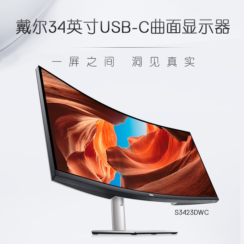 戴尔(DELL)34英寸 曲面显示器 100Hz 内置音箱 Type-C65W反向充电 防蓝光 带鱼屏 1800R S3423DWC价格:3499.00元!
