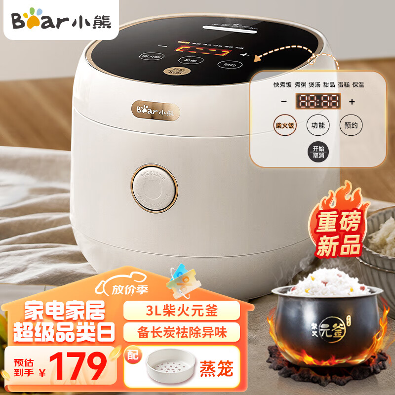 小熊(Bear)电饭煲 电饭锅 家用多功能3升智能防溢预约元釜柴火饭2-3人迷你米饭锅4-5人 DFB-C30L3 3L价格:179.00元!