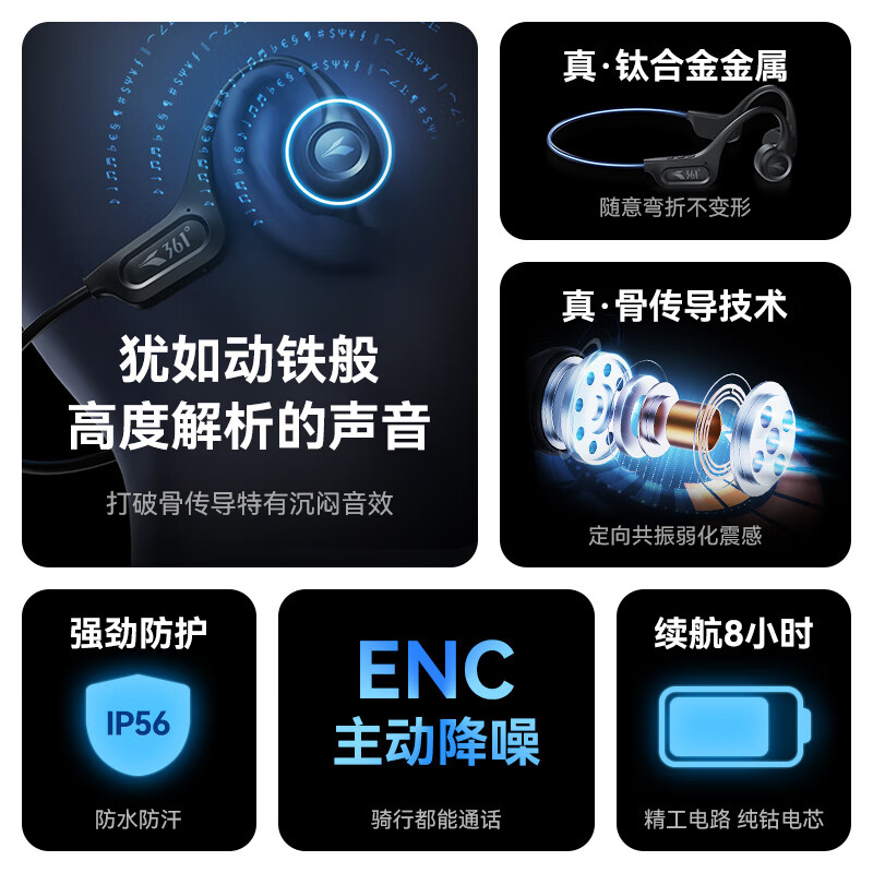 361°度骨传导蓝牙运动耳机不入耳真无线挂耳式骑行跑步防汗水通用 价格:199.00元!