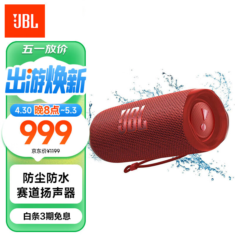 JBL FLIP6 音乐万花筒六代 flip5升级款 便携蓝牙音箱 桌面音响 独立高音单元 礼物音响 庆典红价格:1199.00元!