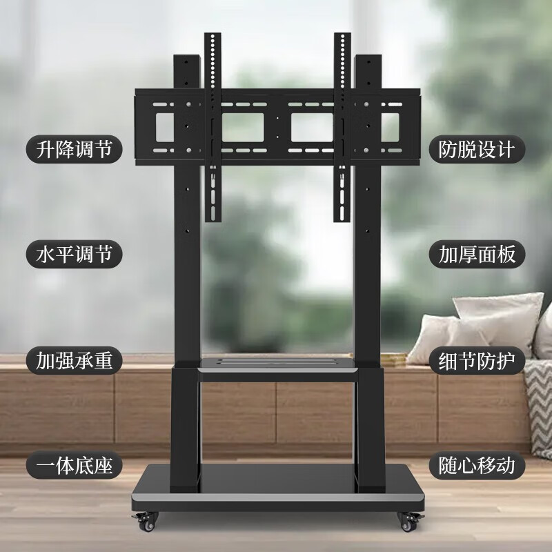 说实话这款TAZD通用电视落地移动推车电视支架挂架的网友比较的多,这一回就给大家分析一下,这款电视自动支架安装方便,一体式的底座,非常牢固,整体结构结实,高低可以调节,万向静音轮,推着没有任何声音,轮子有锁扣,固定非常方便,