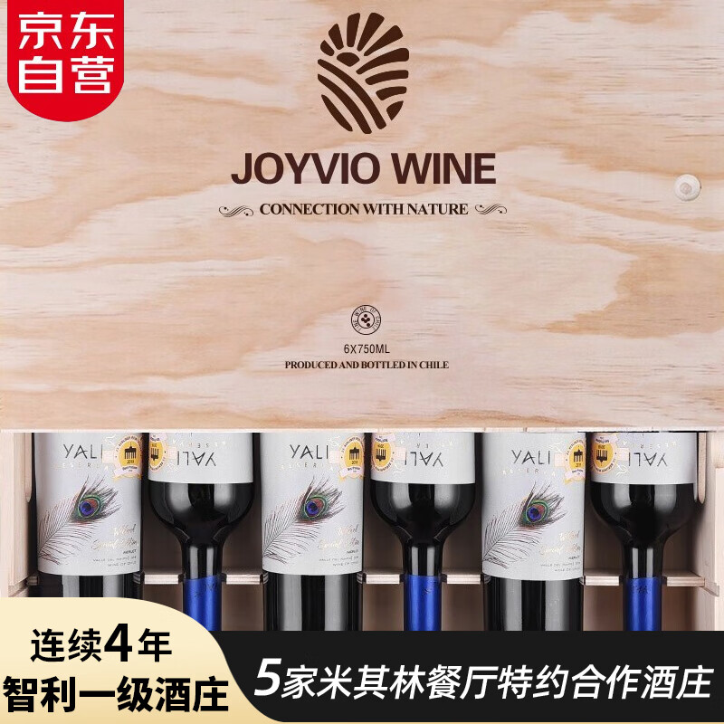 佳沃醇美汇【连续4年智利一级庄】智利原瓶进口红酒 干红葡萄酒礼盒送礼 安第斯之翼美乐木盒 750ml 6支价格:898.00元!