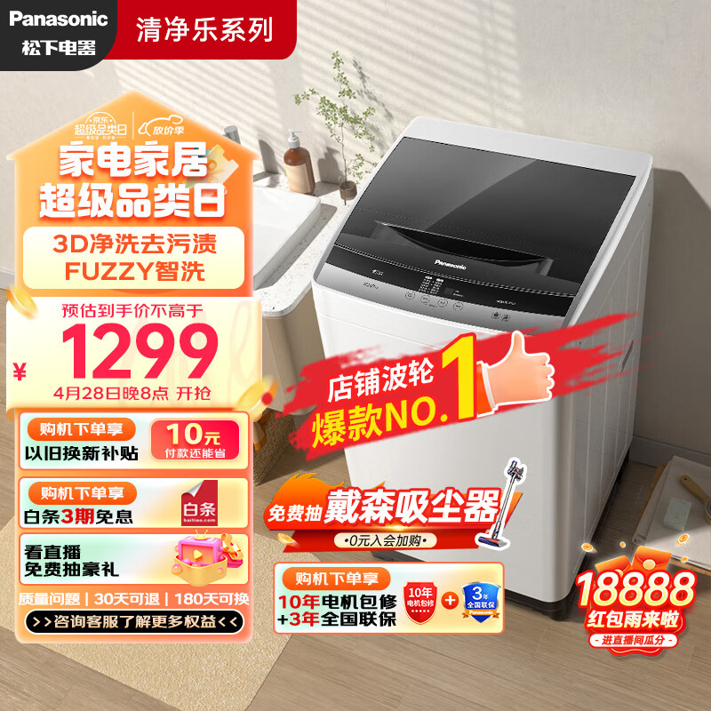 松下(Panasonic)波轮洗衣机全自动 清净乐系列 桶自洁耐脏 强力去污 10公斤大容量 以旧换新 XQB100-3K1N7价格:1278.00元!