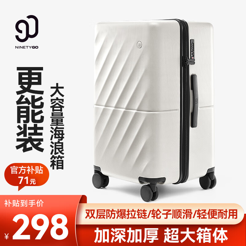 90分 行李箱拉杆箱20英寸登机箱大容量旅行箱万向轮密码箱栀子白男女价格:298.00元!