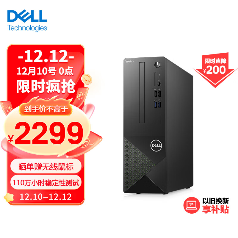 戴尔(Dell)成就3710 台式电脑主机 高性能整机 台式机(12代i3-12100 8G 512GSSD WiFi Win11三年上门)单主机价格:2299.00元!