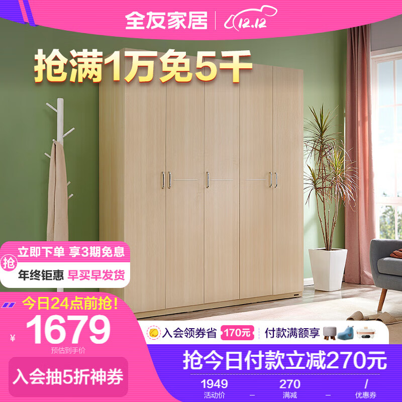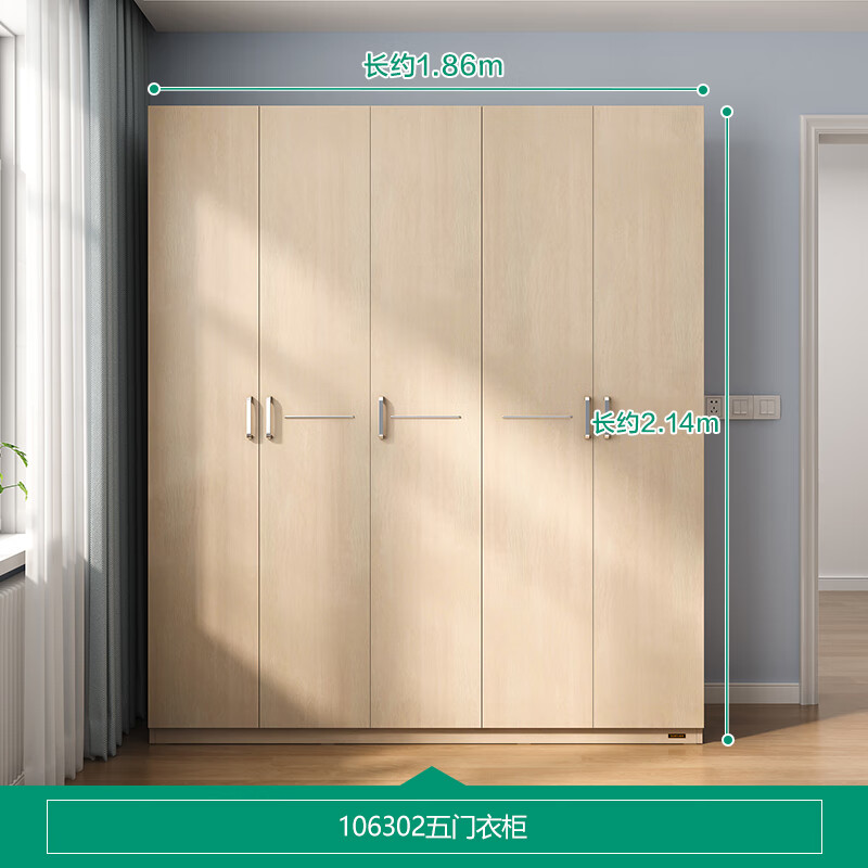 全友家居 衣柜现代简约平开门衣柜卧室家具五门大衣柜106302 五门衣柜价格:1949.00元!