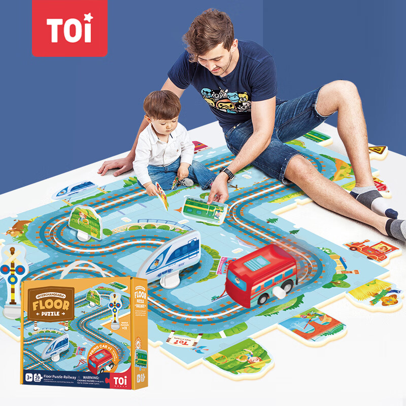 TOI城市交通轨道大块底板拼图3-4-5-6岁宝宝男孩玩具女孩生日礼物儿童过家家小车 铁路款价格:108.00元!