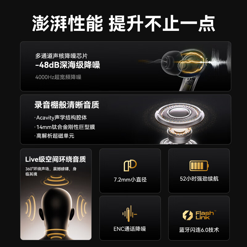SANAG塞那【2024降噪旗舰】T50真无线蓝牙耳机48dB主动降噪耳机入耳式金标认证耳机适用华为 黑色价格:229.00元!