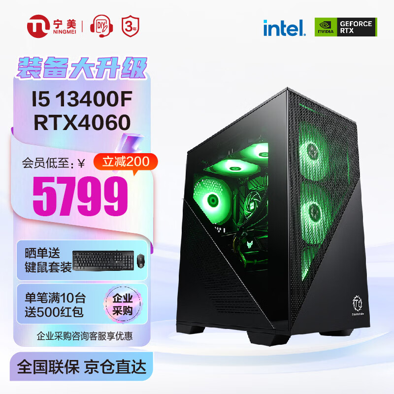 宁美国度魂 13代i5 13400F/RTX4060/16G内存/1T固态/华硕主板吃鸡永劫无间游戏台式主机/DIY组装电脑UPC价格:5999.00元!