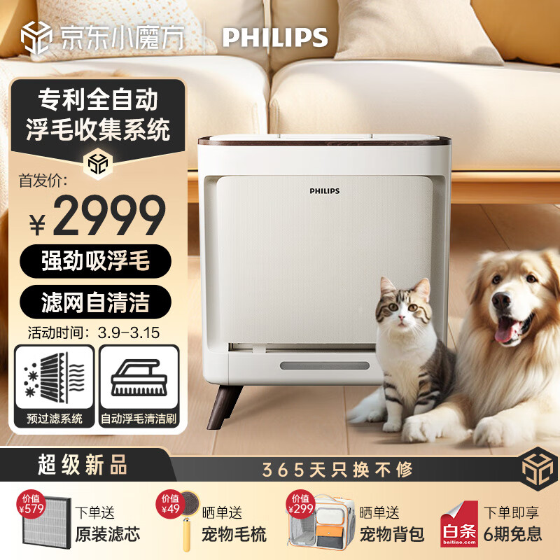 飞利浦(PHILIPS)宠物空气净化器吸猫毛狗毛除臭除异味除甲醛除过敏源净化雾霾四脚兽AC3680价格:2999.00元!