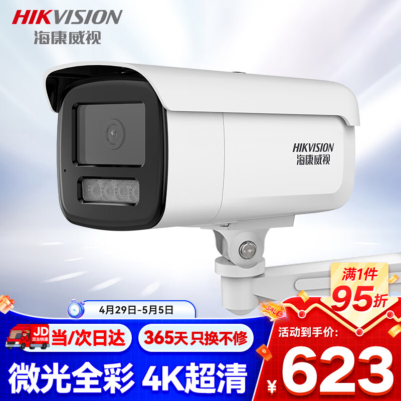 HIKVISION海康威视监控器摄像头800万4K超高清星光夜视室外手机远程可录音拾音网线供电3T86FWDV3-I3S4mm价格:656.00元!