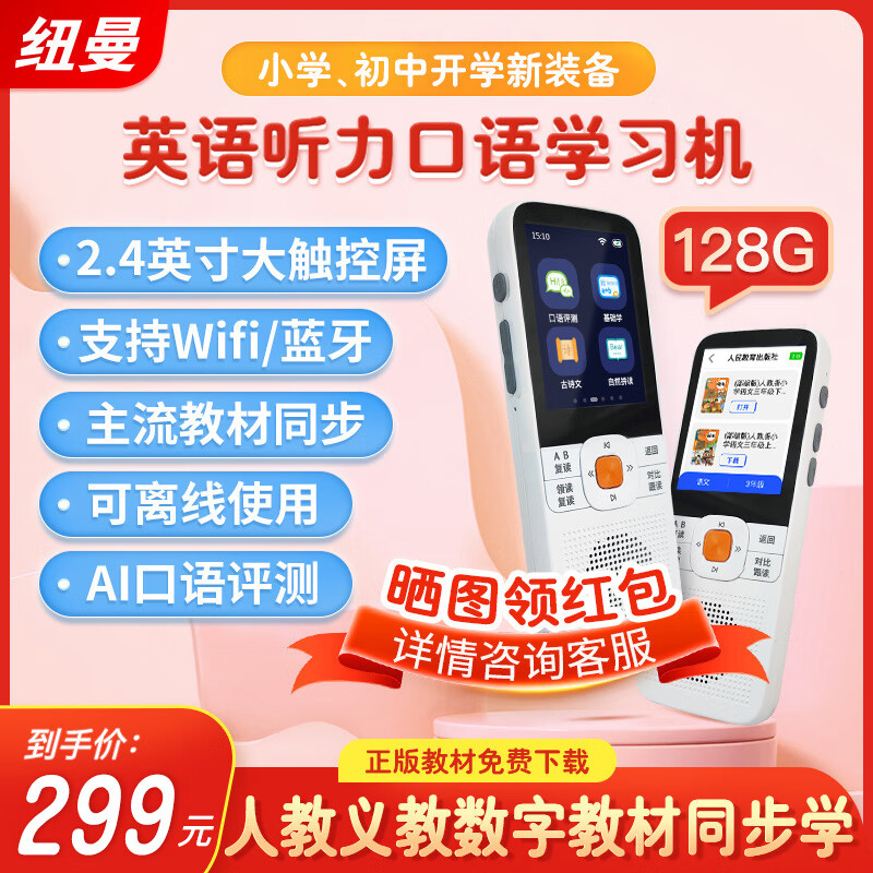 纽曼智能听力复读机英语学习机神器听力宝口袋学习机DL180小学初中同步教材练口语磨耳朵MP3白色128G价格:379.00元!