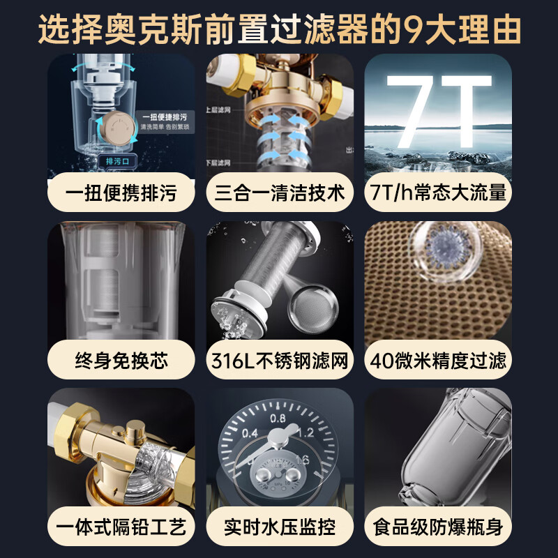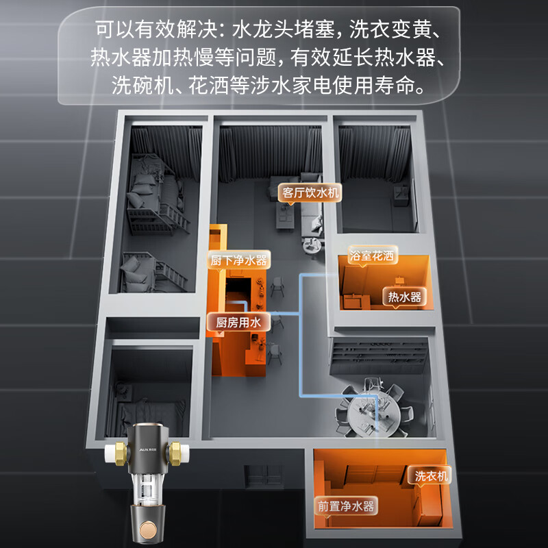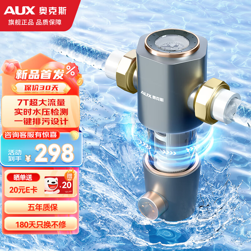 奥克斯(AUX)前置过滤器自动冲洗净水器家用 全屋智能7T大流量 40微米自来水全自动净水反冲洗Q50价格:468.00元!