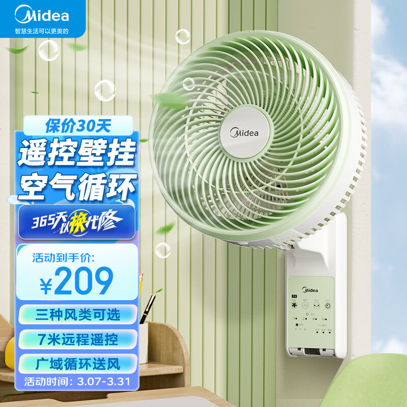 美的(Midea)电风扇 壁扇家用挂壁风扇卧室客厅轻音节能摇头电扇大风力空气循环扇 FWA23UR【电子遥控式】价格:299.00元!