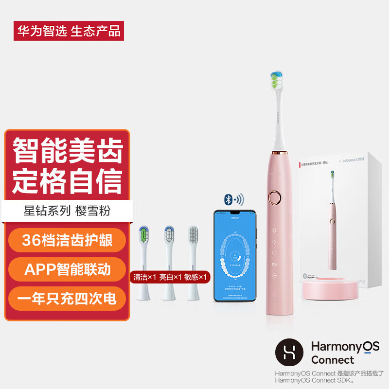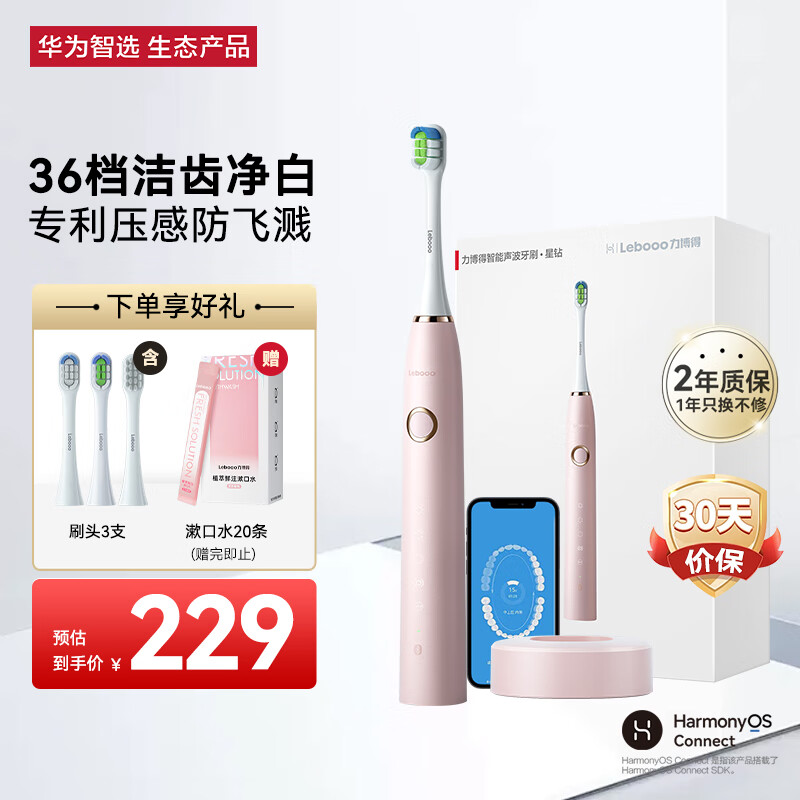 华为智选力博得电动牙刷 智能声波牙刷成人情侣款 星钻 樱雪粉 牙医推荐 送男友送女友牙刷礼物价格:241.00元!