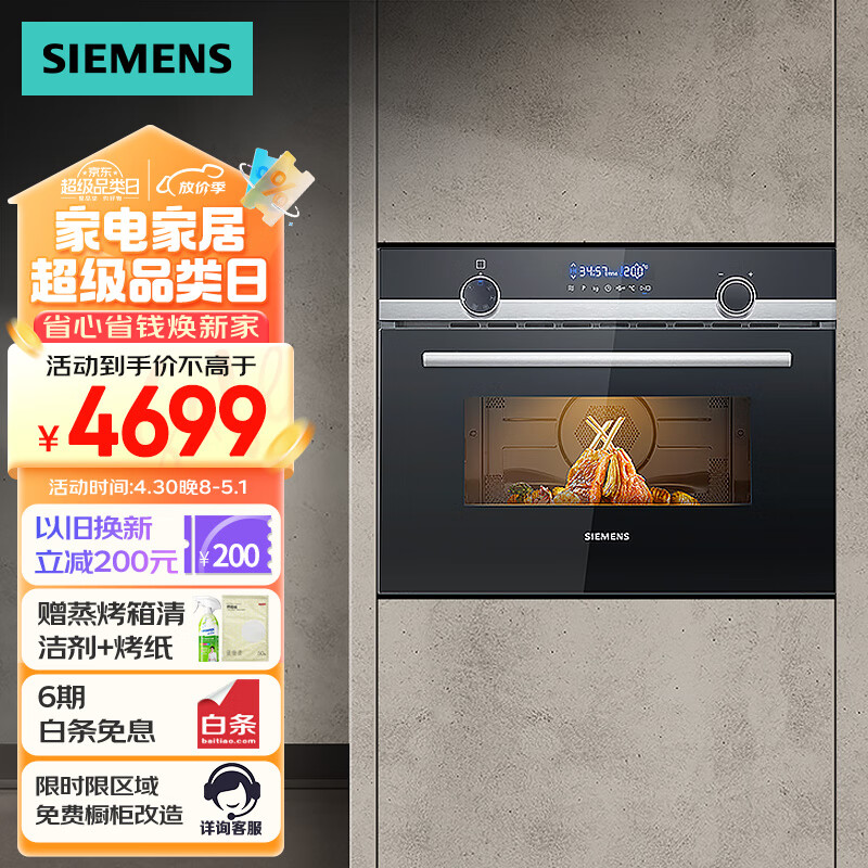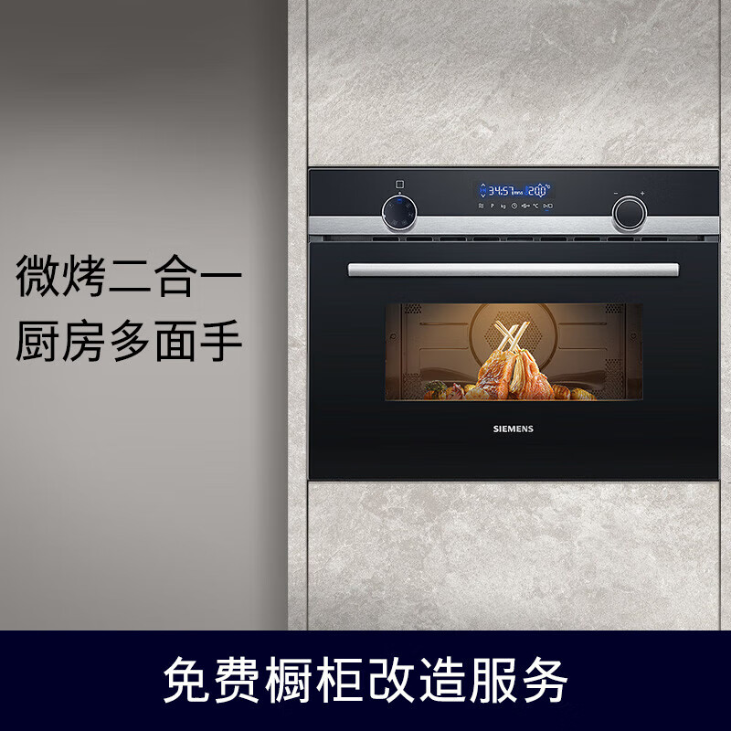 西门子(SIEMENS)嵌入式微波炉烤箱一体机烤箱家用微波营养解冻 一机多用 44升大容量 易清洁?CM585AMS0W高45.4CM价格:4699.00元!