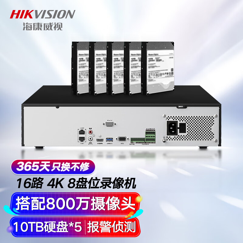 海康威视网络硬盘录像机监控16路8盘位兼容10TNVR满配16个摄像头带5块10TB硬盘DS-8816N-R8价格:14781.00元!