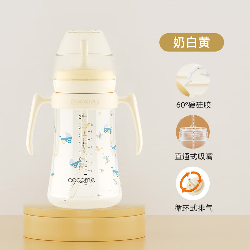 可可萌(COCOME)直通吸管奶瓶2岁以上大宝宝耐咬ppsu直吸式奶瓶3-6岁280ML奶白黄价格:118.00元!
