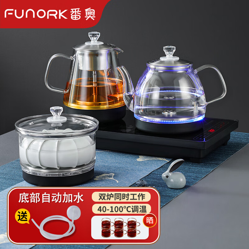 FUNORK 全自动底部上水电热烧水壶泡茶专用保温茶台一体机烧水器家用抽水茶桌茶几嵌入式茶具套装 三件套(尺寸37x20cm)价格:349.00元!