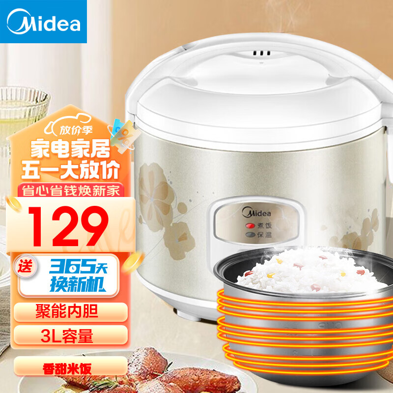 美的(Midea) 电饭煲 精铸发热盘大容量简单易控 黑晶内胆家用迷你小电饭锅 3升黑晶内胆MB-WYJ301 (2-6人) 3L价格:169.00元!