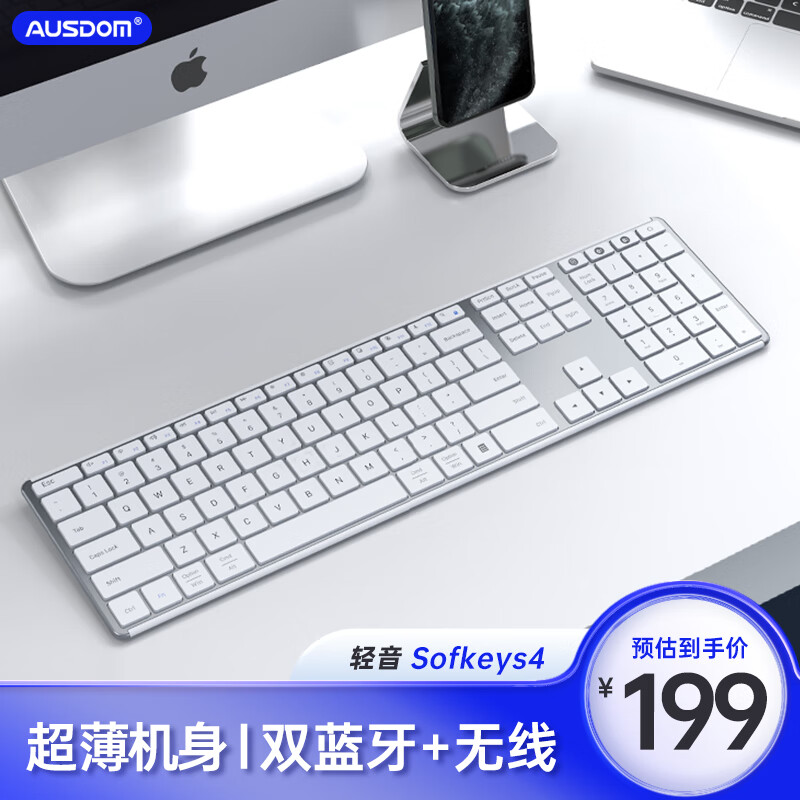 阿斯盾无线蓝牙键盘商务办公家用台式电脑笔记本平板ipad手机键盘静音超薄金属剪刀脚充电式110全键白色价格:199.00元!