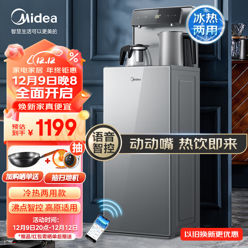美的(Midea)智能语音茶吧机饮水机家用立式触控屏多功能背板下置式桶装水高原适用冷热茶吧机 YD1906S-X价格:1262.00元!