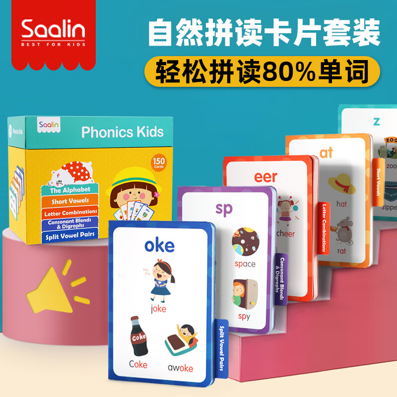 莎林SAALIN儿童英语启蒙自然拼读法记单词卡片 幼儿英文点读闪卡小学价格:139.90元!