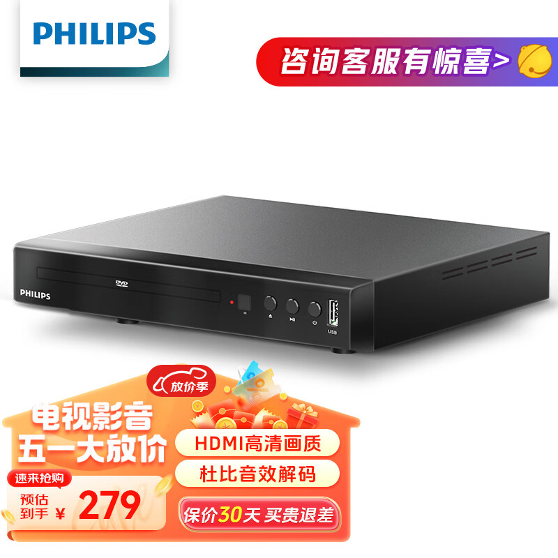 飞利浦 dvd播放机 cd机 dvd 影碟机 dvd影碟机 cd播放器 高清光盘播放机 EP200价格:278.00元!