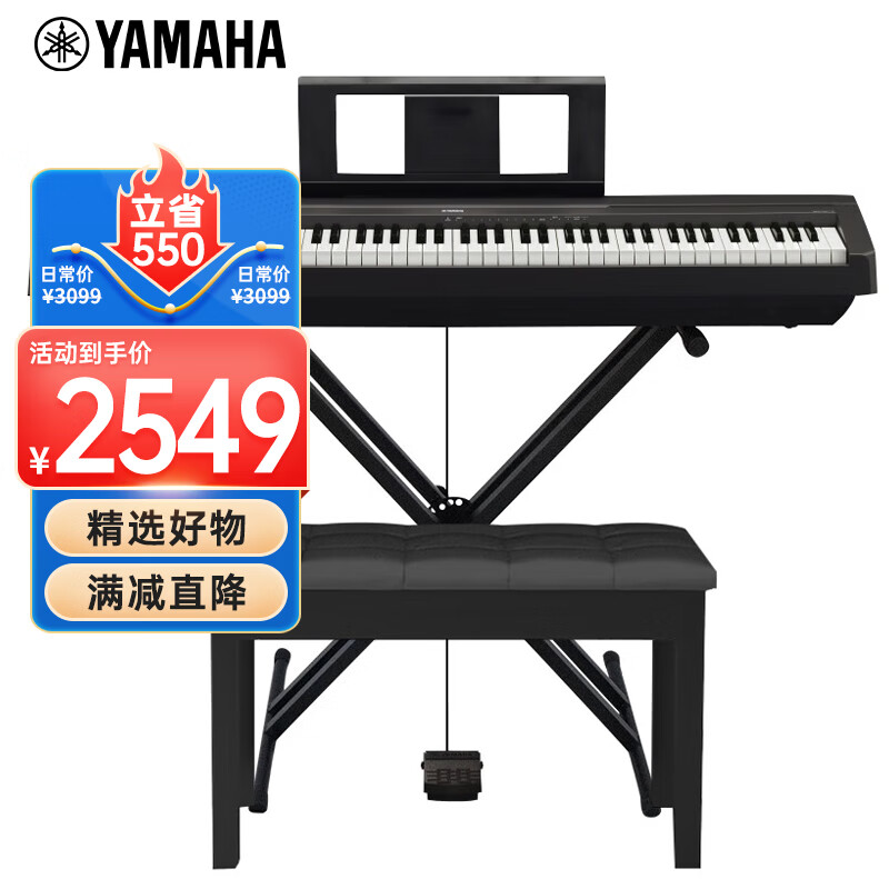 雅马哈(YAMAHA)P45 电钢琴 88键重锤键盘 数码电子钢琴全套配件+X型支架价格:3099.00元!