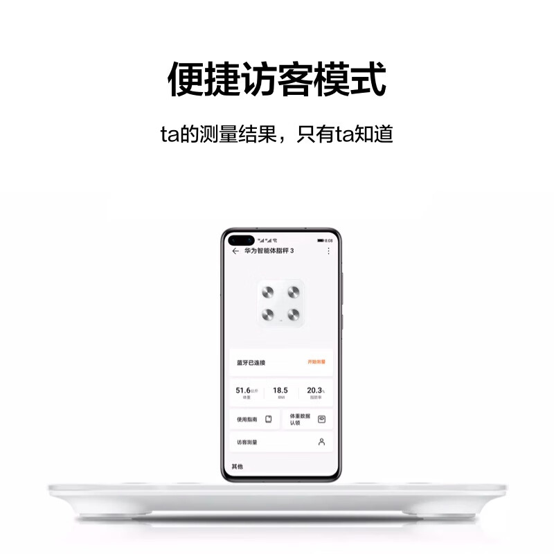 此款华为智能体脂秤 3 WiFi版很喜欢这个外观,质量挺好的,物流速度快,包装完好无损,整个购物体验非常满意。