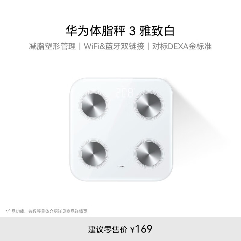 华为智能体脂秤 3 WiFi版 电子秤体重秤家用 14项身体数据/检测精准/WiFi蓝牙双连接 雅致白价格:125.00元!