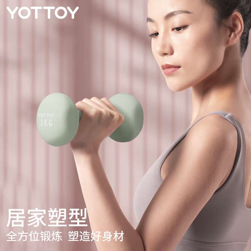 yottoy浸塑哑铃男士女士健身家用肌肉塑形实心小哑铃力量训练器材一对装价格:98.00元!