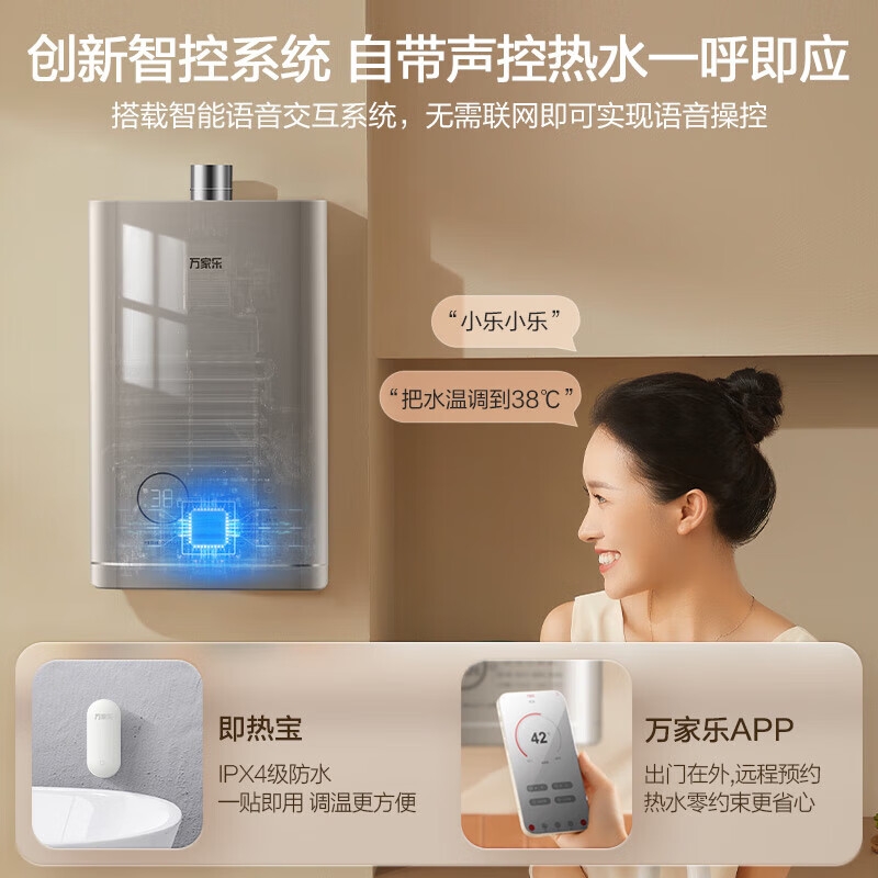 万家乐18升 燃气热水器四驱增压零冷水天然气语音无线分控AI智能节能紫外线杀菌阻垢净滤芯JSQ34-18RL11价格:2899.00元!