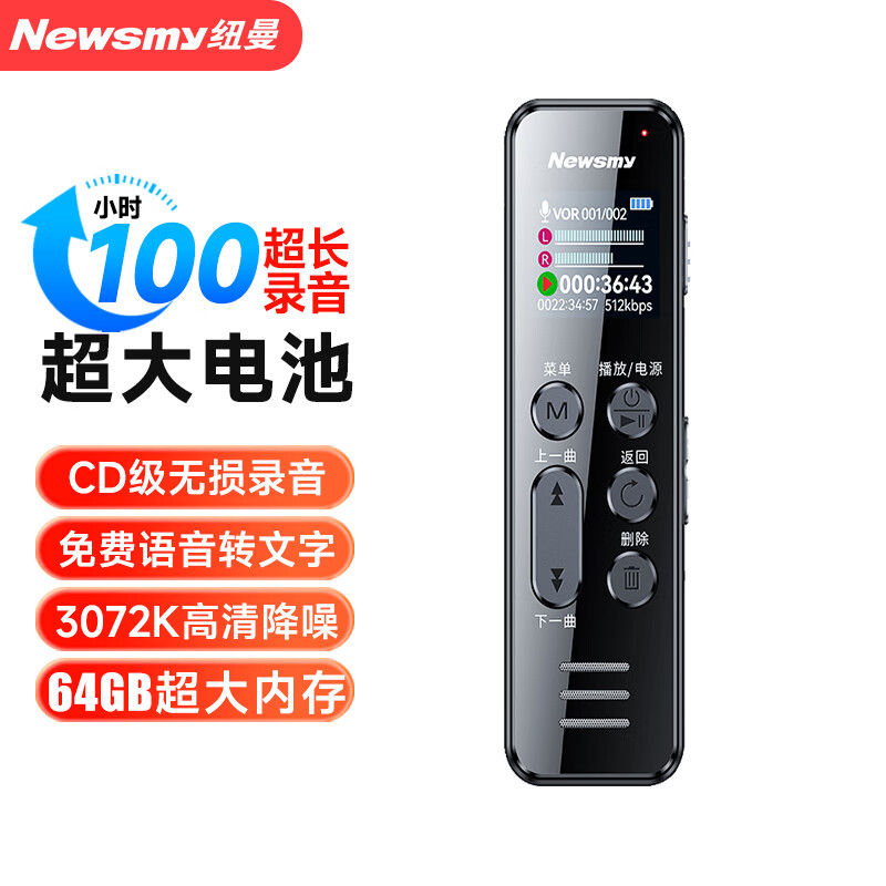 纽曼录音笔 W9 64G 大容量锂电池长时待机 学习培训商务会议 记录留证录音器 黑色价格:299.00元!