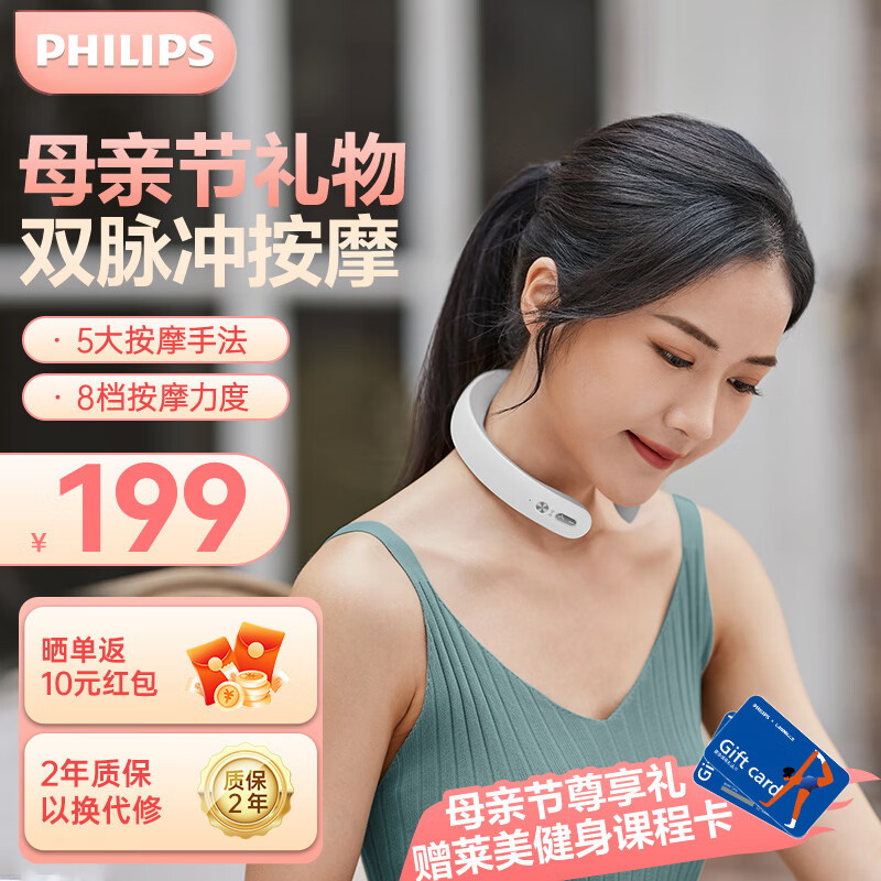 飞利浦(PHILIPS)颈椎按摩器颈部按摩仪颈椎按摩仪双频脉冲肩颈按摩仪按摩舒缓颈肩按摩仪母亲节礼物护颈仪价格:219.00元!