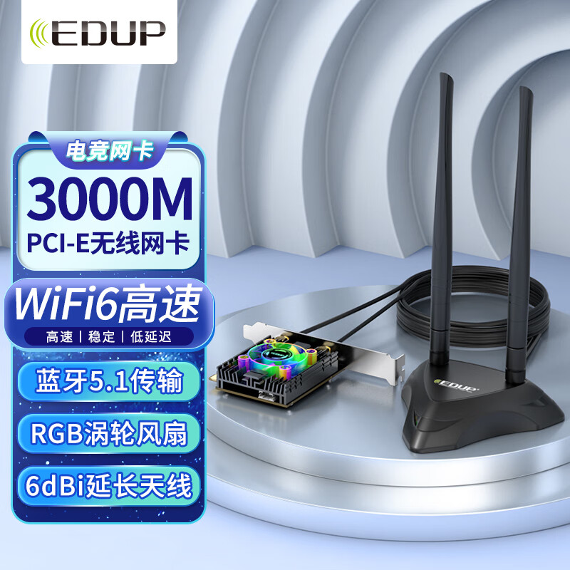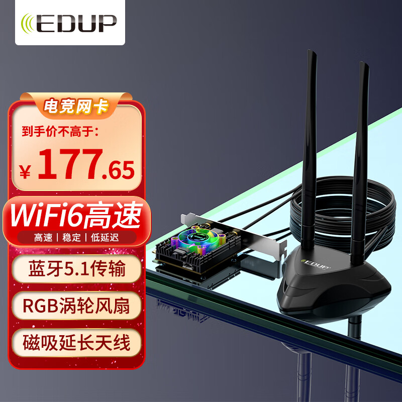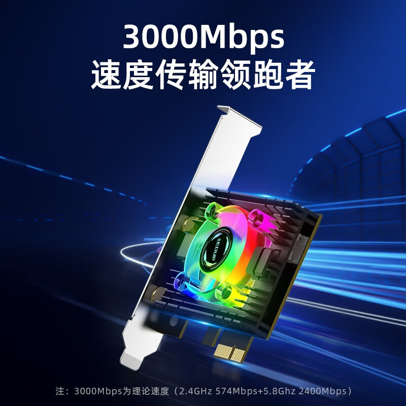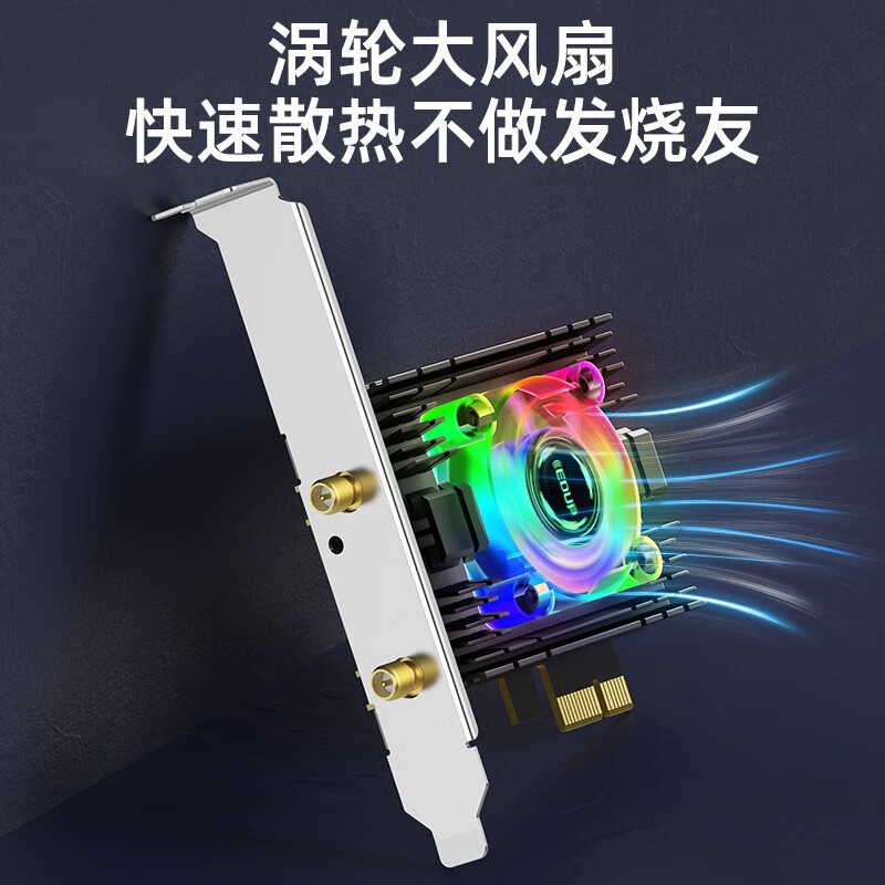 翼联 AX200-FSPRO英特尔WiFi6台式电竞双频3000M无线网卡+RGB涡轮散热+1.2M磁吸底座价格:209.00元!